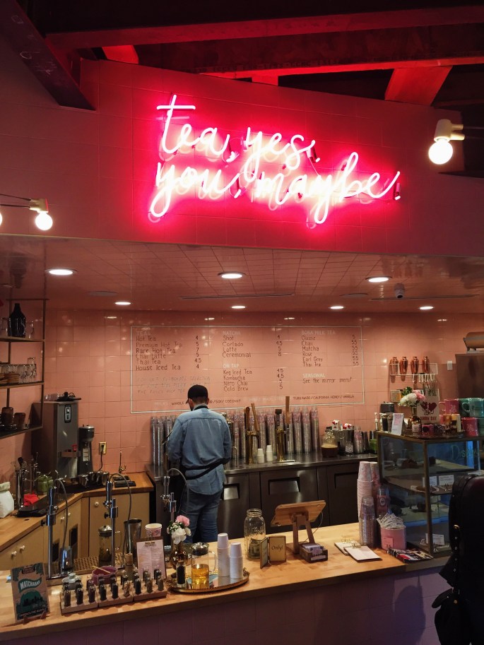 When we flew in Wednesday, we checked into our Airbnb and ventured over to The Grove to check out the Christmas decorations that had just gone up. After the Grove, we decided to check out a coffee shop and tea room that were highly recommended to us by quite a few locals. The coffee shop is called Alfred Coffee + Kitchen and the tea shop is across the street and also owned by Alfred. We went to the Alfred Tea Room first and I got a delicious iced spiced Chamomile tea. The tea room is just that, a small room, with the only seating being right outside in a little courtyard. It’s very cute and totally picturesque. I got my tea and we meandered across the street to the coffee shop. Derek ordered his coffee and as we were sitting there waiting for it to come up, I noticed a sign that said “We proudly serve Stumptown Coffee Roasters”, which made me laugh seeing as I’m from Portland where Stumptown originated. No wonder it was highly recommended among locals! We love it in PDX, too!